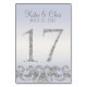 Ce design moderne de carte de table présente des accents de parties scintillant en faux argent avec un arrière - plan périwinkle. Parfait pour les mariages élégants et modernes. Les cartes de numéro de table vont jusqu'à 30.