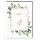 Tableau 4. Veuillez vérifier tous les numéros disponibles. | Ce numéro de tableau mariage est composé d'une aquarelle peinte, d'une végétation d'eucalyptus et de feuilles verts avec un cadre rectangulaire, du texte et du nombre de parties scintillant en faux or. Pour une personnalisation plus avancée de cette conception, cliquez sur le BOUTON OUTIL DESIGN BLEU ci-dessus !