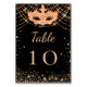 Un arrière - plan noir élégant avec de la poussière de parties scintillant en faux or et un masque masqué. Ajoutez vos numéros un par un.