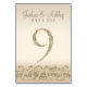 Cette carte de table moderne présente des accents de parties scintillant en faux or avec un arrière - plan de champagne. Parfait pour les mariages élégants et modernes. Les cartes de numéro de table vont jusqu'à 30.