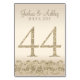 Cette carte de table moderne présente des accents de parties scintillant en faux or avec un arrière - plan de champagne. Parfait pour les mariages élégants et modernes. Les cartes de numéro de table vont jusqu'à 50.