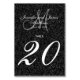 Cette carte de numéro de table en mariage noir et blanc est élégante et sophistiquée. L'arrière - plan a un look de parties scintillant noire, comme des étoiles, qui aide à rendre cette carte encore plus spéciale. Customisez avec vos noms de mariée et de mariée, nom de famille des nouveaux mariés, date initiale monogramme et date mariage. Une carte unique qui peut aussi être utilisée comme un gardien. Conception par Elke Clarke ©. Parties scintillant d'effet photo imprimé. Commandez une par table avec chaque numéro de table mais recevez toujours la remise en bloc pour le nombre total commandé. Autres couleurs disponibles sur demande. (Remarque : cette carte ne contient aucune parties scintillant désordonnée et est une reproduction graphique.) Voir d'autres designs à l'adresse Zazzle.com/monogramgallery. Ce design original signature, par Elke Clarke, populaire depuis 2007, est maintenant mis à jour en ajoutant un effet photo arrière - plan parties scintillant.