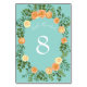 Numéro De Table Pêche Aqua Turquoise Mariage Roses Floral