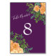 Numéro De Table Pêcher Mariage violet Roses floraux