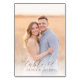 Cette carte de table de mariage présente une photographie chaleureuse et romantique d'un couple debout l'un près de l'autre dans un cadre extérieur avec des tons dorés doux qui évoquent la sensation du lever ou du coucher du soleil. Le design comprend une typographie cursive élégante pour "table 12" et un texte sans-serif simple pour les noms, créant une touche personnalisée parfaite pour les mariages. La composition est centrée et équilibrée, mettant en valeur l'ambiance intime transmise par les sujets souriants et le fond serein. Avec son style réaliste et son éclairage doux, cette carte capture un moment authentique de joie et de connexion, ce qui la rend idéale pour célébrer l'amour lors de votre événement spécial.