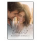 Cette carte de table de mariage présente une photographie chaleureuse et intime de deux personnes partageant un moment tendre, baignée dans une lumière dorée douce qui crée une ambiance romantique. Le design utilise une palette de couleurs harmonieuse de tons beige, or et brun clair pour évoquer une atmosphère cosy et affectueuse. Une élégante écriture cursive annonce le numéro de table, tandis qu'une typographie sans-serif claire apporte de la clarté aux noms, ce qui la rend parfaite pour personnaliser le placement de vos invités lors de votre événement. La mise en page globale met l'accent sur la simplicité et la résonance émotionnelle, idéale pour célébrer l'amour et la connexion lors de votre occasion spéciale.