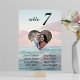 Ajoutez une touche personnelle à votre carte de sièges de mariage à la plage avec ces numéros de table romantiques. Avec votre photo dans une découpe cardiaque, vos noms et la date mariage, chaque carte est posée sur un arrière - plan rêveur océan et ciel pastel. Une belle façon de guider les invités à leurs sièges tout en attachant votre thème côtier avec élégance et amour.