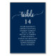 Carte de tableau de sièges des invités pour dîner de mariage, thème bleu marine avec écriture rustique moderne.