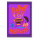 Illustration originale d'une tasse de café de sorcière Amoureux des chats d'Halloween, baguette magique, potion, minuscules fantômes mignons, citrouille et chauve-souris volant avec lettrage à la main disant Happy Halloween. Dans des couleurs vives et vives modernes avec violet et orange amusant illustration pour les enfants.
