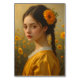 Un portrait numérique gracieux et intemporel qui capture la douce beauté d'une jeune femme entourée de fleurs dorées. Les tons chauds de jaune et de lumière évoquent des sentiments de paix, de nature et de soleil doux — parfait pour une décoration élégante de la maison, des chambres ou des galeries d'art.