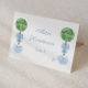 This is an elegant and economical option for individual personalized place cards. This design is sold as a 3.5x5 inches flat card that you will need to fold (or score and fold) in half yourself to make individual place cards with a folded size of 3.5x2.5 inches. This classic design features a watercolor boxwood topiary ball decorated with a light blue bow and situated in a Ginger Jar planter. On the reverse is a pale blue and white gingham check.