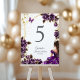 Numéro De Table Purple Golden Tiara Roses Butterfly Quinceañera