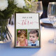 Une façon moderne et plus originale de personnaliser vos numéros de table avec des photos d'enfance de la mariée et du marié à l'âge de ce numéro (la valeur par défaut est une).Les photos d'espace réservé d'une petite fille (la mariée) et d'un petit garçon (le marié) sont en cadres noirs, dans la moitié inférieure. Dans la partie supérieure, il y a le message "quand nous avions trois ans" avec l'âge écrit dans un script d'écriture manuscrite rose (rose poussiéreux) et le reste ci-dessus, en casquette noir plus petit (lettres). Les photos des petits enfants élégamment habillés sont de Pixabay et sont gratuites pour un usage commercial. La petite fille rose, avec un rose dans les cheveux, est de Pexels et le petit garçon en costume bleu clair, avec une cravate arc bleu, est de Adina Voicu.