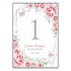 Numéro De Table Quinceanera Floral Argent Rose