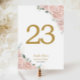 Numéro De Table Quinceanera XV Blush Pink Roses Floral Gold
