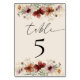 Ajoutez une touche de charme saisonnier à votre réception avec ce numéro de table de Mariage Fleur sauvage Boho. Dotée d'illustrations florales d'aquarelle douce aux tons d'automne riches, comme la terre cuite, le violet poussiéreux et le bordeaux, chaque carte apporte chaleur et élégance à votre paysage de table. Le design allie le charme rustique à une esthétique boho moderne, parfaitement adaptée aux réceptions mariages de automne en extérieur, à la grange ou au jardin. À la fois élégants et fonctionnels, ces numéros de table aident à guider vos invités tout en rehaussant votre décor avec une touche romantique et d'inspiration nature.