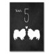 Chien blanc Eskimo marié et silhouettes mariées avec coeur. Une carte de table de réception de style tableau noir pour les amoureux d'Eskie. Chaque carte doit être numérotée et ajoutée au panier séparément. Visitez Jenn's Doodle World pour encore plus de cartes de table pour chiens de races et de produits de planification mariages à thème Eskie.