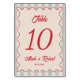 Numéro De Table Red Script Blue Line Retro Wedding Table Number
