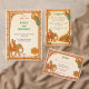 Elegant 5x7 table number card featuring a luxury gold elephant and floral motifs on a rich saffron background. Double-sided with an emerald green mandala design. Perfect for royal-themed Indian weddings and Sangeets.