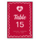 Numéro De Table Retro Fun Wavy Frame Red Pink Cupid Wedding