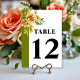 Bran de rhododendron avec fleurs jaune orange carte de numéro de table de mariage. Élevez votre réception de mariage avec cette carte de numéro de table magnifiquement conçue, représentant un délicat branche de rhododendron aquarellé orné de fleurs jaune orange et de feuilles vertes. Positionnée dans le coin supérieur gauche, l'illustration botanique crée un point de focalisation romantique et accrocheur. Une bordure vert olive le long du côté gauche ajoute une touche raffinée d'élégance, tandis qu'une typographie audacieuse et élégante assure une excellente lisibilité.