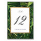 Un design audacieux et frais avec des feuilles de palmiers peints et une bordure en faux or pour un thème d'été et de mariage tropical.