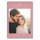 This wedding table card features a romantic and intimate design with a central photograph of two individuals, framed by a soft pink border. The warm color palette includes muted pinks and natural tones, creating an inviting atmosphere. Elegant cursive typography at the top indicates the table number, while simple sans-serif text below provides space for customization. The clean layout emphasizes the tender mood conveyed by the smiling subjects, making it perfect for celebrating love on your special day.