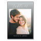 This wedding table card features a warm, romantic design with a central photograph of two individuals set against a softly blurred background that evokes the glow of sunrise or sunset. The color palette includes soft pastels and warm tones like light beige, cream, and muted greens, creating an intimate and serene atmosphere. Elegant cursive script at the top reads "table 12," while clean, uppercase sans-serif text at the bottom provides space for names, ensuring readability against a dark backdrop. The overall style is modern yet timeless, capturing tender moments of joy and celebration, perfect for adding a personal touch to your special day.