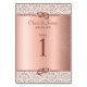 Ces cartes de numéro de table de parties scintillant en or rose tendance sont parfaites pour votre décor de table de mariage élégant. Le faux arrière - plan métallique est encadré sur le dessus et le bas de damas, et décoré de bagues mariages.