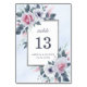 Magnifique carte de mariage numéro de carte avec des fleurs d'aquarelle rose et blanc sur un arrière - plan bleu clair.