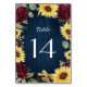 Numéro De Table Roses de tournesol Bourgogne Rouge et Mariage bleu