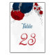Numéro De Table rouge et bleu marine fleurs argent feuille mariage