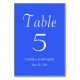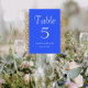 Guidez vos invités de mariage à leur table avec cette carte de numéro de table de style simple qui comporte des lettres blanches et stylisées sur un arrière - plan de couleur bleue royale branché. Le design est de chaque côté de la carte. Modifiez votre carte pour modifier le numéro de table, le nom du couple de mariages et la date. Commandez les cartes séparément pour chaque numéro de table.