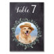 Numéros de table par de vos animaux de compagnie! Inclure votre meilleur chien, meilleur chat et tout animal de compagnie dans votre mariage avec ses propres numéros de table pour vos invités. Parfait pour les amoureux de les chiens, et un numéro spécial de table de chien sera un succès à votre mariage. Simples ardoise de tableau rustique avec des feuilles d'eucalyptus. Customisez ce signe mariage animal de compagnie avec votre chien, chat, chiot ou chaton photo préférée, et numéro de table!. DROIT D'AUTEUR © 2020 Judy Burrows, Black Dog Art - Tous droits réservés. Rustique Eucalyptus Chalkboard Chien Photo Animal de compagnie Numéro de table