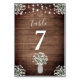 Ce modèle de carte de numéro de table mariage est doté d'un vase en pot de mason rempli de fleurs d'haleine de bébé sur un arrière - plan en bois rustique accentué de lampes à cordes. Cliquez sur le bouton personnaliser pour plus de flexibilité dans la modification du texte ! Des variantes de cette conception ainsi que des produits de coordination sont disponibles dans notre boutique, zazzle.com/store/doodlelulu. Contactez-nous si vous avez besoin que cette conception s'applique à un produit spécifique pour créer votre propre article de correspondance unique! Merci tellement pour voir un DoodleLulu par 2 june conception de bogues!