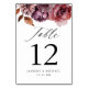 Elégantes cartes de numéro de table mariages à fleurs automnales avec une bordure supérieure de fleurs d'aquarelle et de feuillage dans les tons marsala, violet, bordeaux, marron et orange, complétées par un script de calligraphie moderne. Pour commander les cartes de table : ajoutez votre nom, votre date de mariage et votre numéro de table. Ajoutez chaque numéro à votre panier individuellement et retirez-le lorsque vous avez terminé. Conçu pour coordonner avec notre collection Rustique de mariages floraux d'automne.