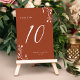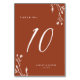 Ce design élégant mais rustique de numéro de table mariage est doté d'un joli arrière - plan couleur terre cuite avec des fleurs sauvages dessinés à la main et une typographie élégante. Le design est le même de part et d'autre. Consultez notre collection de Fleurs sauvages rustiques pour la coordination des articles.