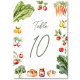 Des numéros de table de douche nuptiale fraîchement sortis du marché, avec des fruits et des légumes rustiques, parfaits pour les célébrations sur le thème de la ferme à table, du jardin ou du marché agricole