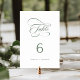 Numéro de table du mariage de calligraphie tourbillonnant romantique et élégant. Pour une personnalisation plus avancée de cette conception, cliquez sur le BOUTON OUTIL DESIGN BLEU ci-dessus !