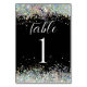 Élégant script de calligraphie Parties scintillant holographique noir Numéro de table