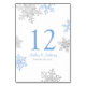 Numéro De Table Silver Lapis Bleu Blanc Snowflakes Mariage d'hiver