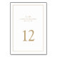 Numéro de table mariage simple avec un design élégant et intemporel avec votre monogramme de deux lettres, noms, date et numéro de table entouré d'une mince bordure. Tous les éléments de conception sont faux or sur un arrière - plan blanc et peuvent être changés en n'importe quelle couleur que vous souhaitez dans l'outil d'édition de conception. Un design propre et classique, parfait pour un couple qui veut un numéro de table de style traditionnel avec une touche moderne. Ajoutez chaque numéro de table à votre panier individuellement.