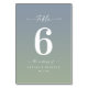 Simple Ombre Dusty Blue & Leaf Green Wedding Numéro De Table De Dîner De La Réception. Cette Table Card chic et moderne est simple classique et élégant avec un dégradé d'ombre subtil et une jolie police de calligraphie de script signature avec queues. Montré dans la nouvelle Colorway. Disponible en plusieurs options de couleur, ou n'hésitez pas à modifier les couleurs à partir de l'éditeur (cliquez sur customiser plus loin lors de la personnalisation). Pour en savoir plus, recherchez les collections mariages 2022 de Chic Paperie pour voir toutes les tendances design et couleurs mariages de cette année.