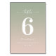 Simple Ombre Leaf Green & Light Rose Mariage Numéro De Table De Dîner De La Réception. Cette Table Card chic et moderne est simple classique et élégant avec un dégradé d'ombre subtil et une jolie police de calligraphie de script signature avec queues. Montré dans la nouvelle Colorway. Disponible en plusieurs options de couleur, ou n'hésitez pas à modifier les couleurs à partir de l'éditeur (cliquez sur customiser plus loin lors de la personnalisation). Pour en savoir plus, recherchez les collections mariages 2022 de Chic Paperie pour voir toutes les tendances design et couleurs mariages de cette année.