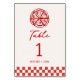 Apportez un charme ludique à votre célébration sur le thème de la pizza avec ces numéros de table Slice Slice Baby. Conçus avec des illustrations amusantes de pizzas, des accents classiques de chèque rouge et blanc et une typographie audacieuse et facile à lire, ils aident les clients à trouver leur place tout en gardant votre décor sur le thème. Le libellé et les numéros entièrement personnalisables les rendent parfaits pour les baby showers, les anniversaires, les mariages ou tout événement amateur de pizza.