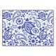 Belle carte de table mariage décorative avec un style bohème paon bleu. À l'arrière de la carte de table se trouve un motif boho décoratif en bleu et blanc. Ajoutez votre nom ou numéro de table à l'avant de la carte.