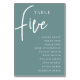 Des cartes numériques simples et chic en turquoise et blanc poussiéreux font une déclaration élégante à votre mariage ou événement. Le design comporte "table [nombre]" dans un mélange d'écriture serif classique et manuscrite, avec des noms d'invités individuels en dessous. Le design se répète de part et d'autre. Cartes numérotées individuellement vendues séparément; commandez chaque numéro de table individuellement de notre collection.
