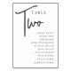 Des cartes numériques simples et chic en noir et blanc classique font une déclaration élégante à votre mariage ou événement. Le design comporte "table [nombre]" dans un mélange d'écriture serif classique et manuscrite, avec des noms d'invités individuels en dessous. Le design se répète de part et d'autre. Cartes numérotées individuellement vendues séparément; commandez chaque numéro de table individuellement de notre collection.