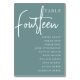 Des cartes numériques simples et chic en turquoise et blanc poussiéreux font une déclaration élégante à votre mariage ou événement. Le design comporte "table [nombre]" dans un mélange d'écriture serif classique et manuscrite, avec des noms d'invités individuels en dessous. Le design se répète de part et d'autre. Cartes numérotées individuellement vendues séparément; commandez chaque numéro de table individuellement de notre collection.