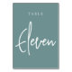 Des cartes numériques simples et chic en aqua turquoise poussiéreux et blanc font une déclaration élégante à votre mariage ou événement. Le design comporte "table [nombre]" dans un mélange de sérigraphie classique et de lettres manuscrites. Le design se répète de part et d'autre. Cartes numérotées individuellement vendues séparément; commandez chaque numéro de table individuellement de notre collection.